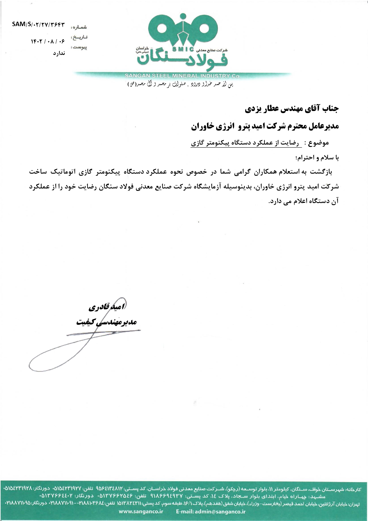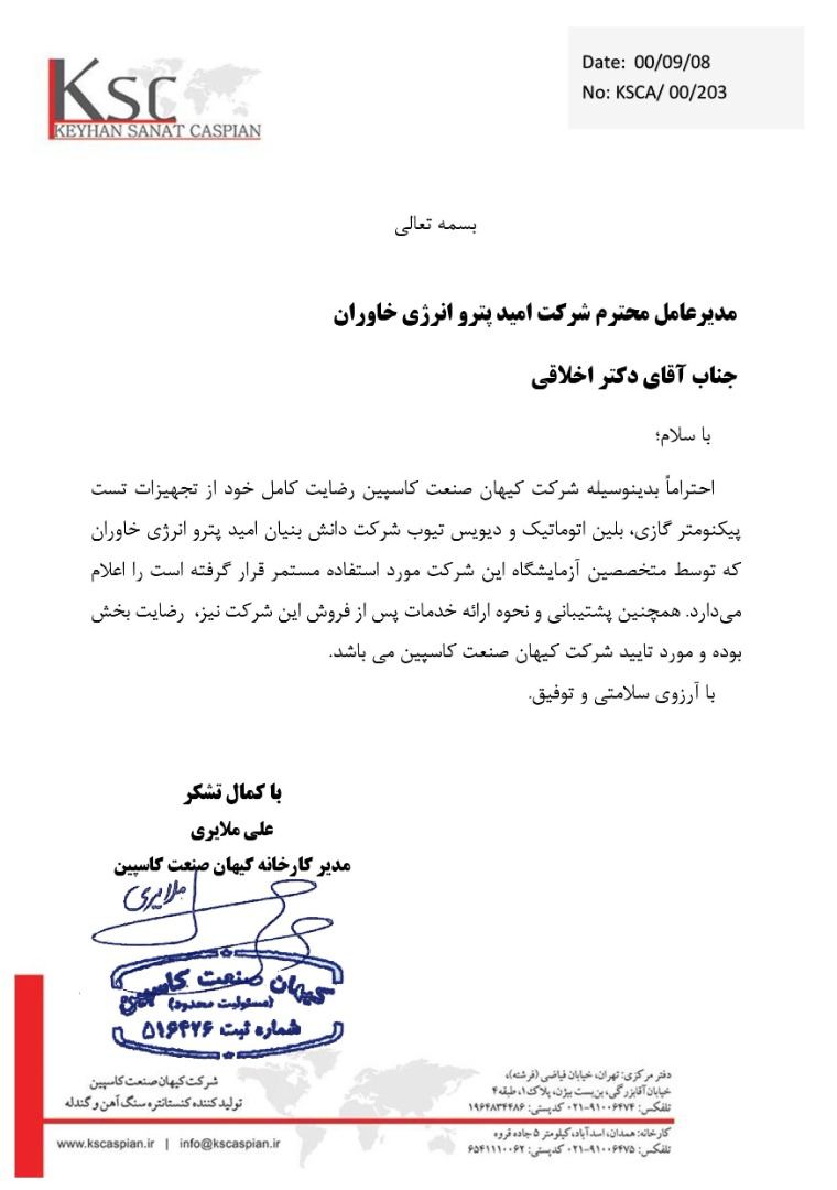 لازم به ذکر میباشد که دستگاه پیکنومتر گازی برای اولین بار در ایران توسط شرکت امید پترو انرژی خاوران براساس استانداردهای ASTM D6226 و ISO 12154، ساخته شده و در سال 1397 موفق به کسب مجوز دانشبنیان از معاونت علمی و فناوری ریاست جمهوری گردیده است. این دستگاه در تیپهای مختلف طراحی شده که از نظر عملکرد و دقت، بنا بر سفارش مشتری قابل ارائه می باشد.